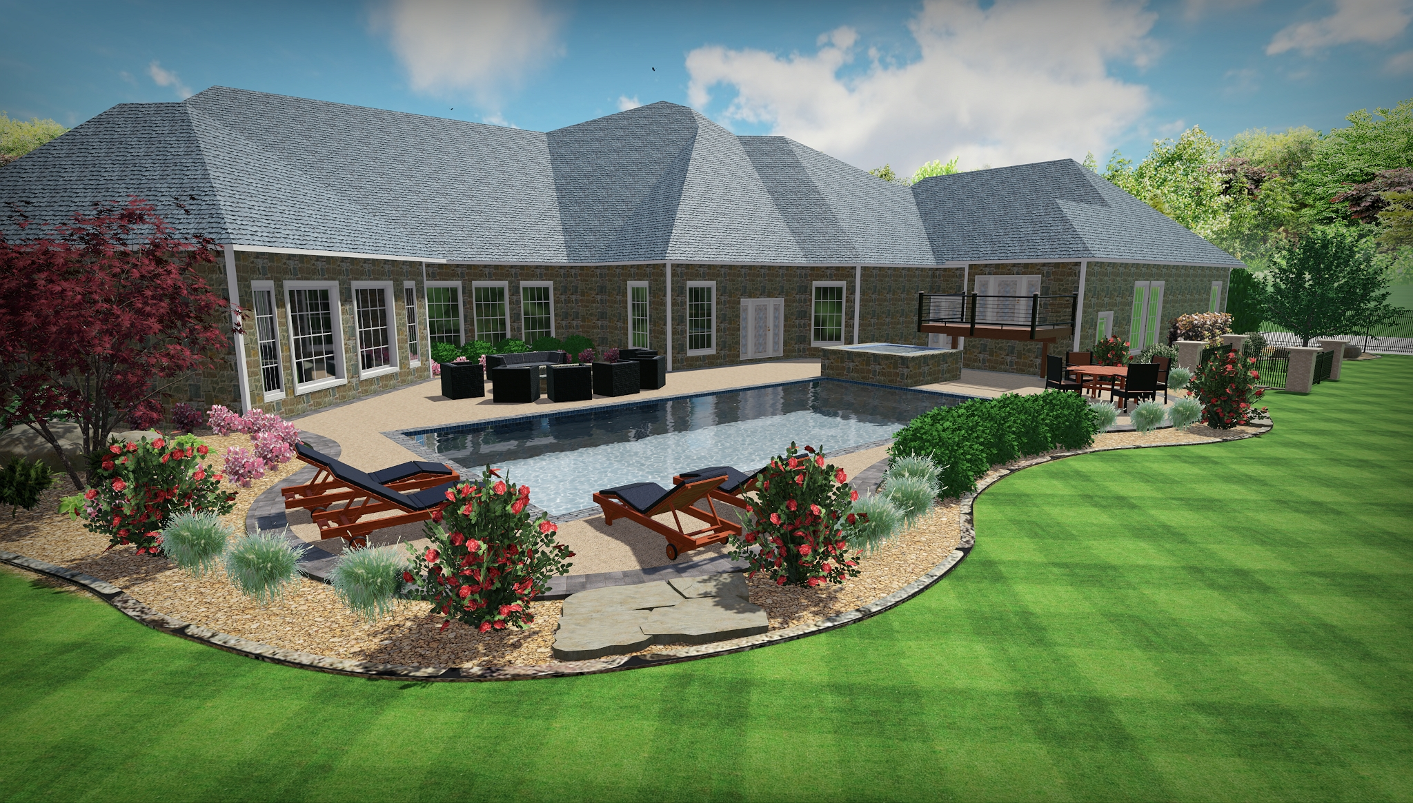 The finished landscape transformed the property into a private outdoor resort-style environment.